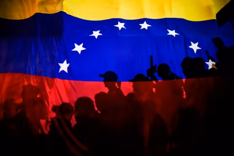 Opposition protesters, seen behind a Venezuelan flag, during the violent opposition protests known as "guarimbas" in 2017. Photo: Juan Barreto/AFP/File photo.