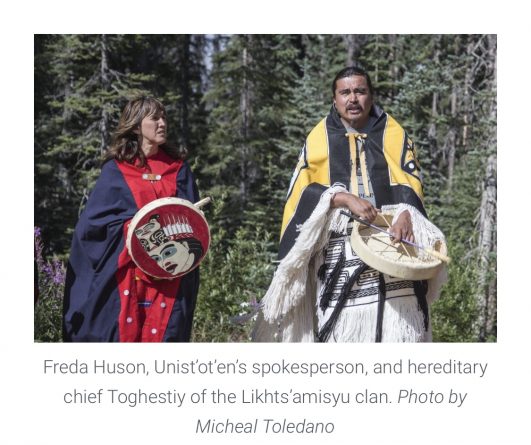 Our people’s belief is that we are part of the land. The land is not separate from us. The land sustains us. And if we don’t take care of her, she won’t be able to sustain us, and we as a generation of people will die.” – Freda Huson, Unist’ot’en Hereditary Spokesperson