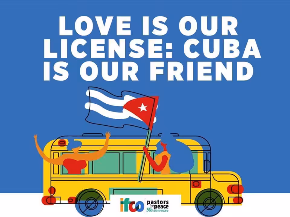 IFCO/Pastors for Peace poster for solidarity with Cuba. Photo: IFCO.