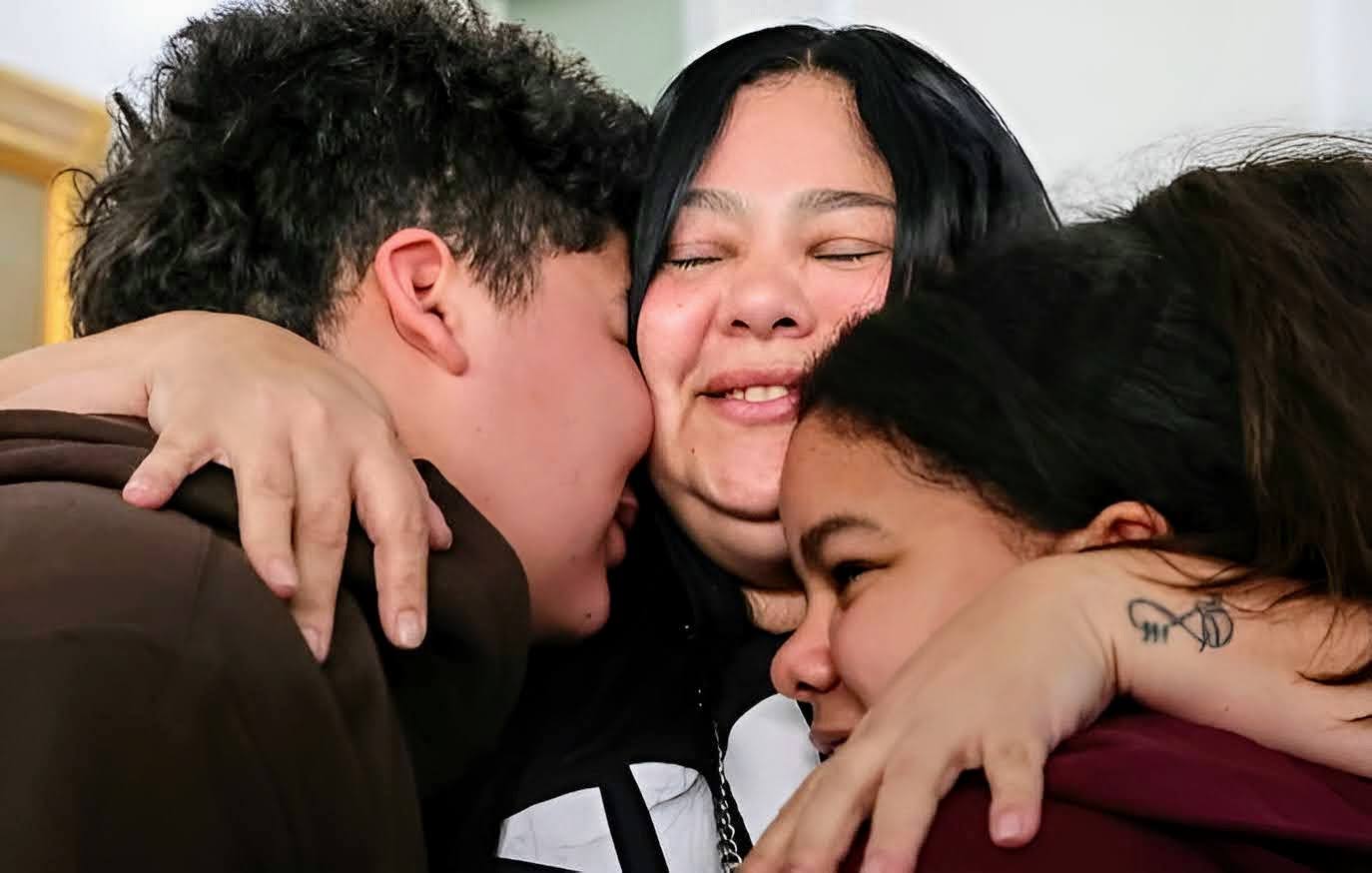 Andreina Hidalgo holds her two kids after being reunited thanks to the efforts of the Venezuelan government, October 24, 2025. Photo: IG/@minjusticia_ve.