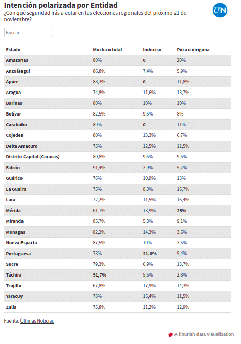 The state with the highest number of undecided voters was Portuguesa, where 21.6% still have not decided whether or not they will vote in the regional elections.