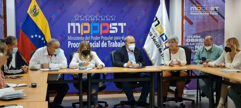 Ministers of the Venezuelan government and representatives of teachers' unions in dialogue discussing vacation bonus. Photo: RedRadioVE.