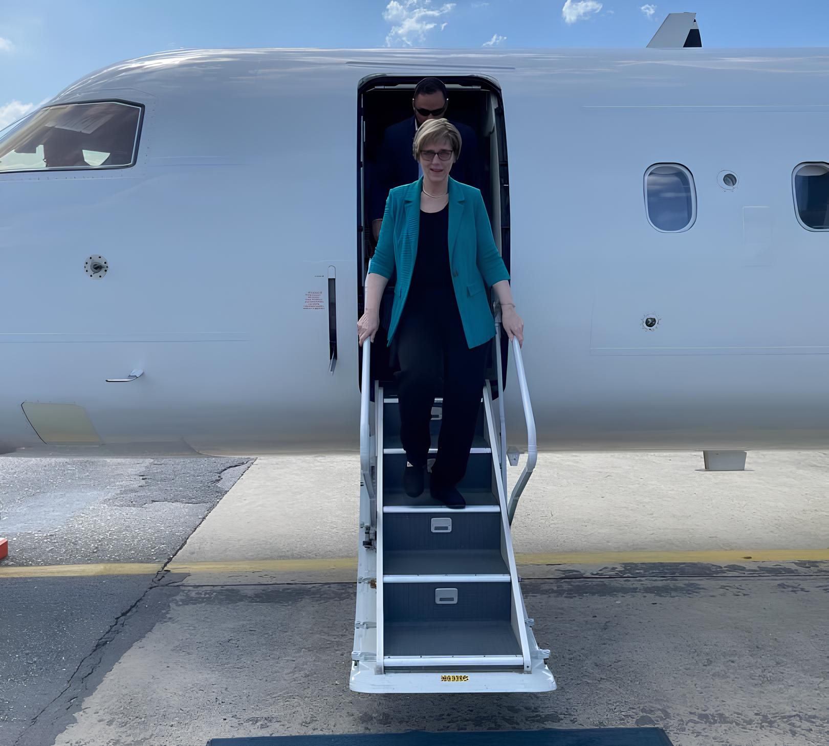 US diplomat Laura Dogu deboards at Simón Bolívar International Airport in Maiquetía, Venezuela, January 31. Photo: Instagram/@usembassyve.