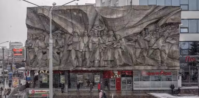 Feature iamge: USSR-era socialist art in Minsk, Belarus, in February 2019.