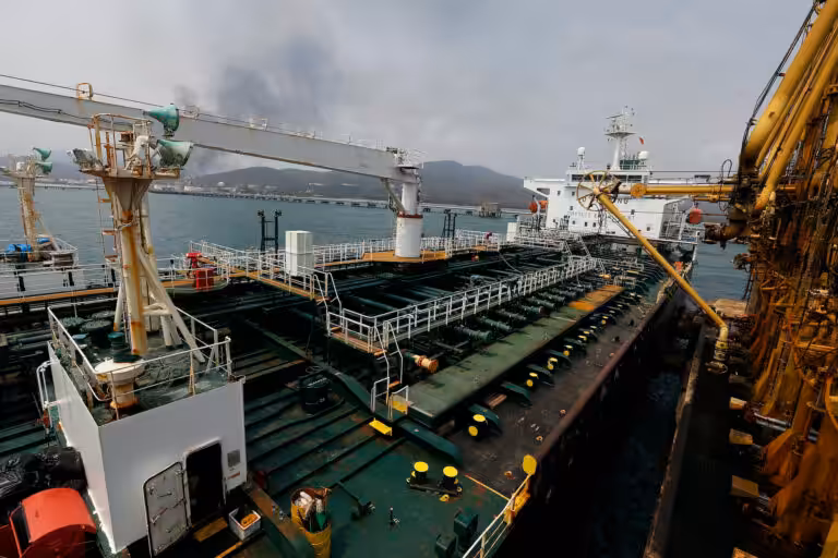 ARCHIVO – En esta fotografía de archivo del 25 de mayo de 2020, el barco petrolero iraní Fortuna permanece anclado en el muelle de la refinería El Palito cerca de Puerto Cabello, Venezuela. (AP Foto/Ernesto Vargas, archivo)