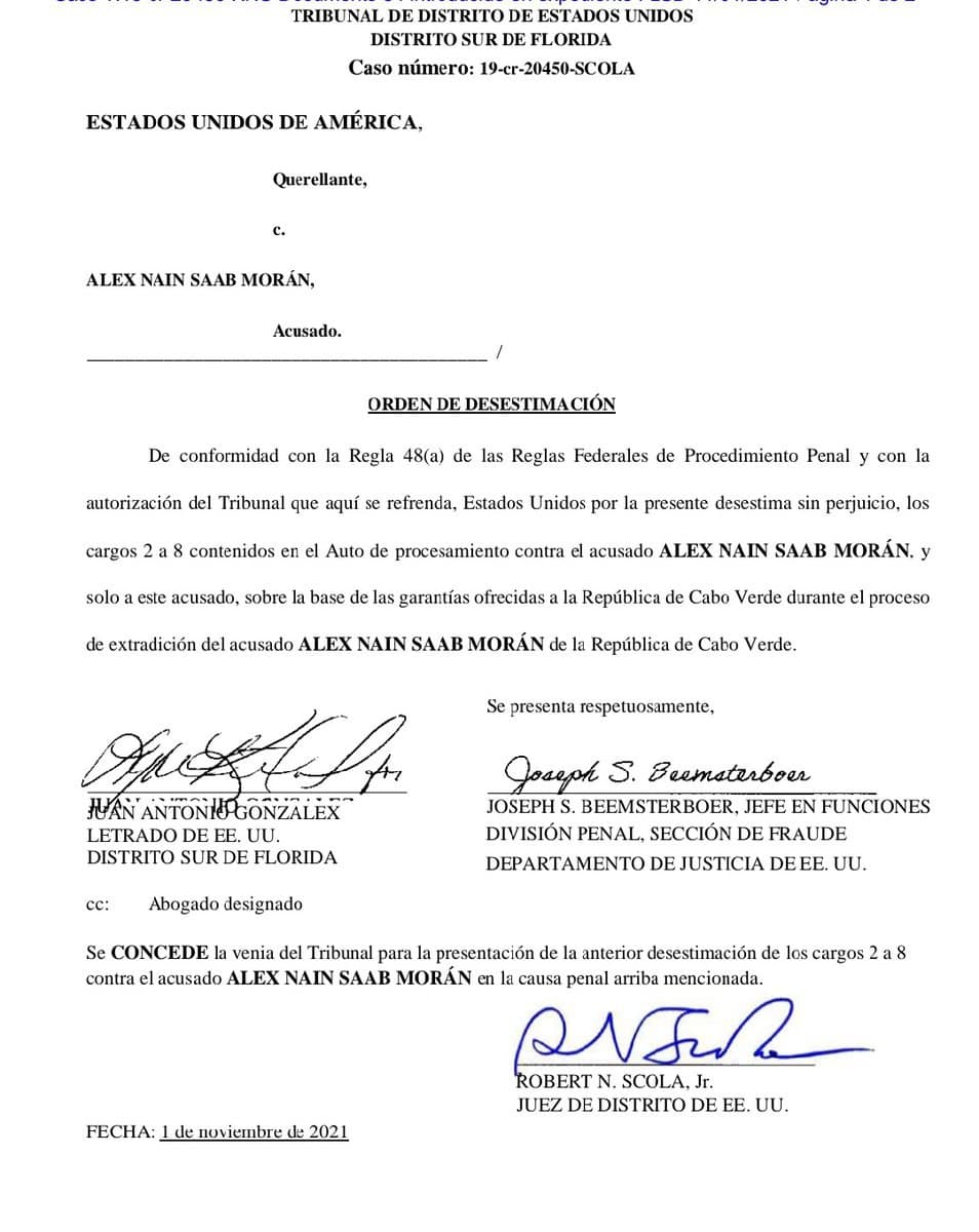 “To comply with the guarantees that the US made to the Republic of Cape Verde during the extradition of the accused, Alex Nain Saab Moran, the US respectfully requests that charges 2 to 8 of the accusation against Alex Nain Saab Moran, and only of that accused, be dismissed,” stated US prosecutors—shown in the image above—in an attempt to provide some justification for the decision.