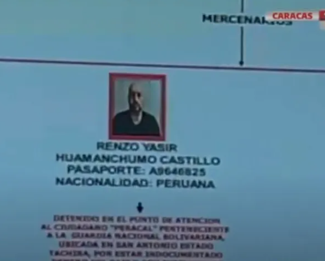 One of the detainees is a Peruvian citizen, Renzo Yasir Huamanchumo Castillo. His arrest took place in San Antonio, Táchira state. Cabello showed photographs where he can be seen together with groups of alleged mercenaries.