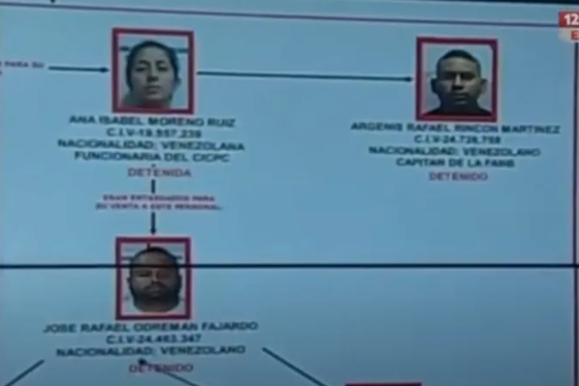 The former police officers delivered weapons to a gang of seven people of Venezuelan nationality, who are already detained. The detainees are Carlos Alberto Infante, Neomar Jesús Páez, José Rafael Odreman Fajardo, Ana Isabel Moreno (a CICPC official), FANB Captain Argenis Rafael Rincón Martínez, Ricky Rafael Zapata de los Santos, and Pedro Gerardo Gutiérrez.
