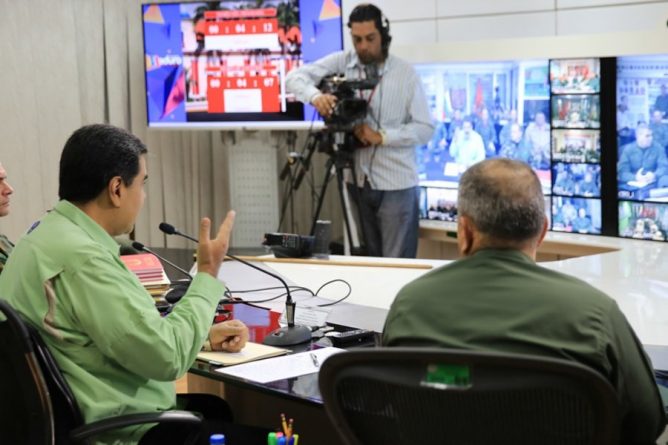 During a video conference with the High Command of the Venezuelan Armed Force (FANB) and all the Commanders of the different strategic Military Zones of Venezuela, President Maduro announced today the closing of the border with Brazil starting today until further notice.