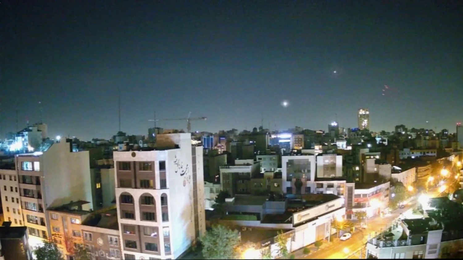 Israeli missiles being intercepted by air defense systems over Tehran, Iran. Photo: NBC.