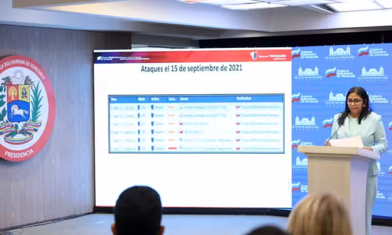 Featured image: Venezuelan Vice President Delcy Rodríguez giving details about a cyber-attack on the Banco de Venezuela platform. Photo: MINCI