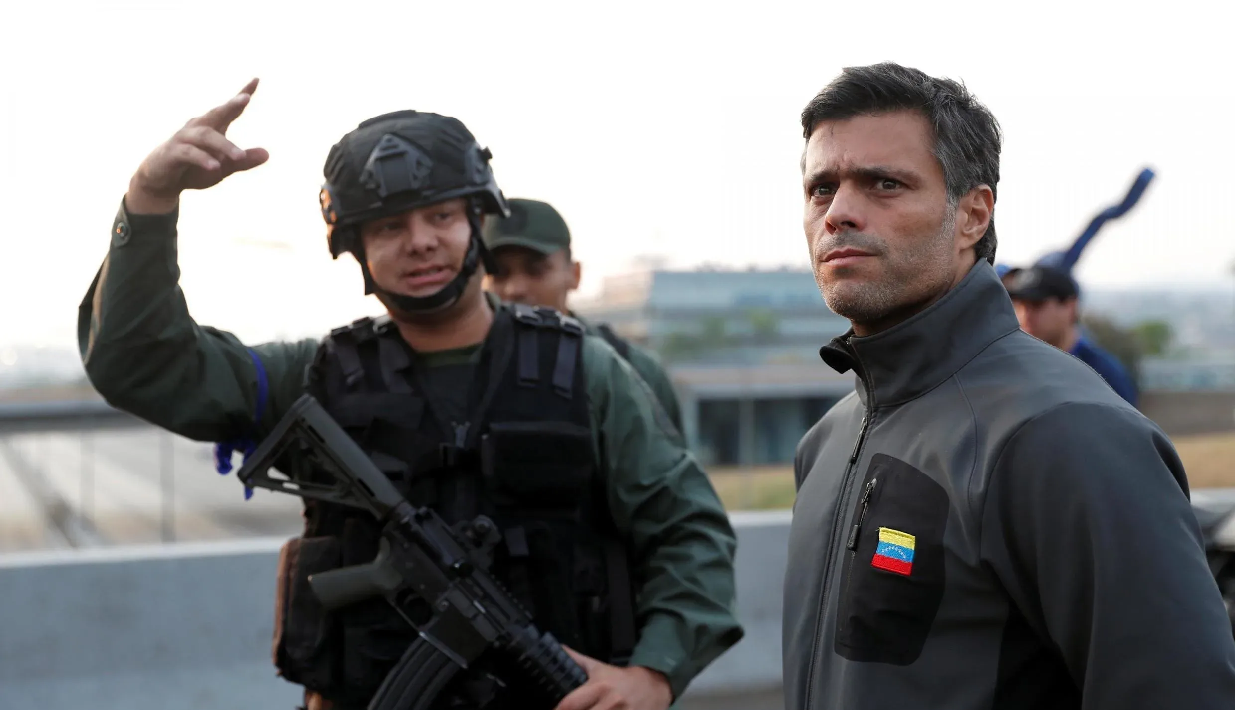 Venezuelan opposition politician Leopoldo López is seen outside Generalisimo Francisco de Miranda La Carlota Airbase, in Caracas, on April 30, 2019, leading a failed coup d'etat. Photo: Carlos Garcia Rawlins/Reuters/file photo.