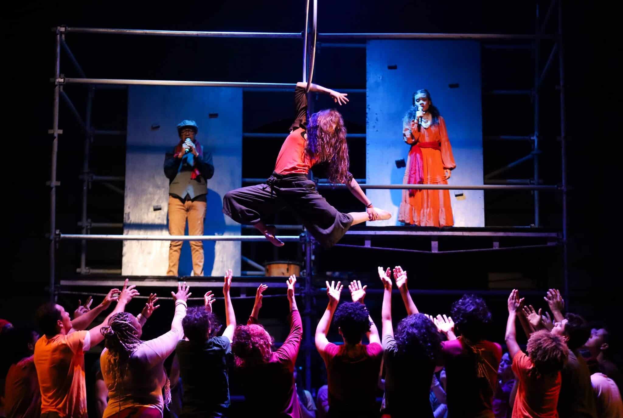“Neither Enemies nor Foreigners” features a large cast that includes Juvel Vielma, Arnaldo Mendoza, Gerardo Luongo, and Rafael Gil. It also features actors from the CNT’s artistic creation cast, both long-standing and new, along with talented performers from the circus arts and dance. The show also featured a special appearance by Francisco Pacheco.