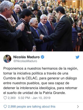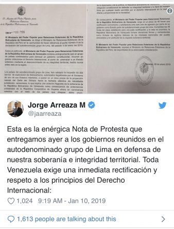As “triumph of Venezuela for peace” was described this Saturday by the Venezuelan Foreign Minister, Jorge Arreaza, the rectification of ten of the twelve countries that signed the declaration of the self-appointed Lima Group, resorting to the call of Nicolás Maduro, with respect to modify its position with regard to point 9 of their declaration published on January 4.
