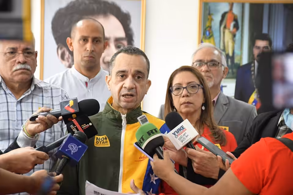 National Assembly Deputy Julio Chávez briefs the press about the anti-NATO summit that Venezuela will hold in Táchira state at the end of June. Photo: Sputnik.