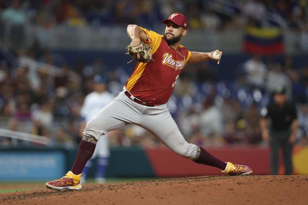 Venezuelan pitcher Emmanuel de Jesus during the game against the team representing the Israeli apartheid state. Photo: Twitter/@TeamBeisbolVe.