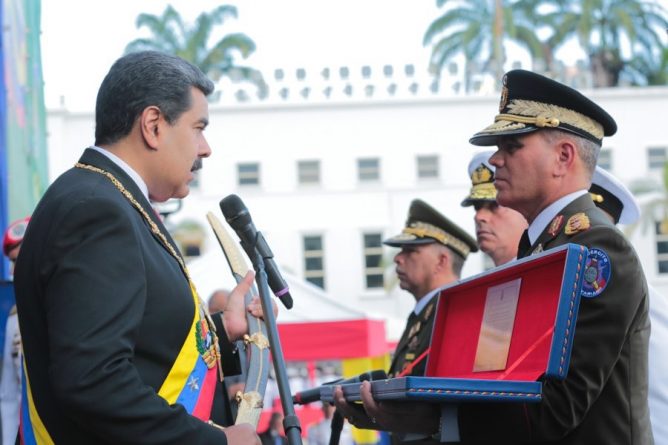 “On behalf of the entire Bolivarian National Armed Forces, from our hands to your hands, as Commander in Chief, we deliver you a symbol that you have rescued, the replica of the saber of the General in Chief Rafael Urdaneta, who was in the hands of the Liberator Simón Bolívar in Carabobo, is the saber of loyalty (…) for that reason it deserves to take it as a soldier leader and as a Bolivarian, “said Minister Padrino López.