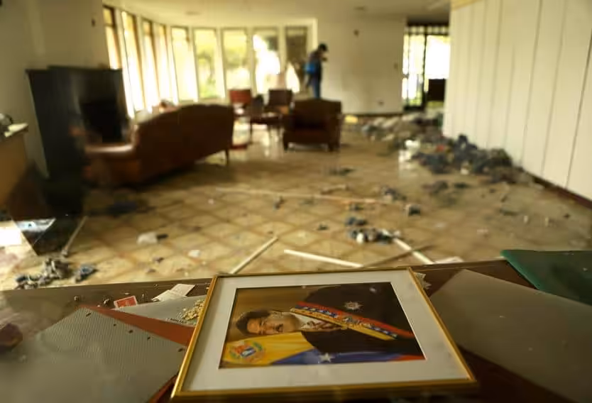 Featured image: Main lobby of the Venezuelan consulate in Bogota, vandalized and looted.