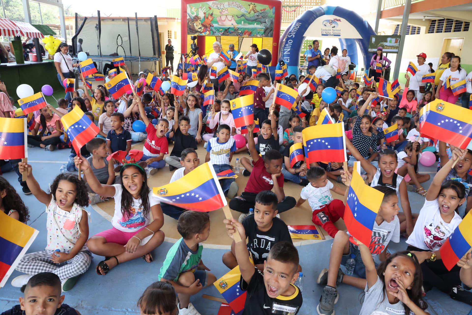 Venezuelan kids holding the Venezuelan flag in a toy delivery event. Photo: Ultimas Noticias.