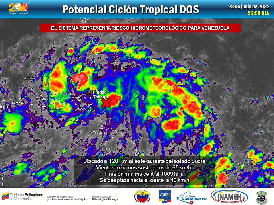 The trajectory of Tropical Cyclone Two, also known as Tropical Cyclone Bonnie, will be from east to west, with the probability of winds forming at up to 60 km/h and extended rains, explained the vice president. “The measures have been taken to mitigate the impact that this cyclone is going to have,” she said during a live broadcast on Venezolana de Televisión (VTV).
