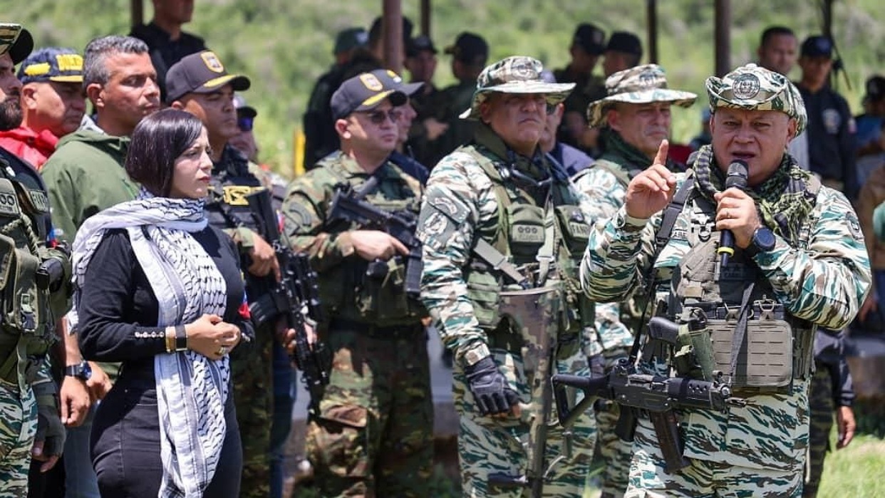 Venezuelan Interior Minister Diosdado Cabello at an event with the Bolivarian National Militia in Aragua state. Photo: Con El Mazo Dando.