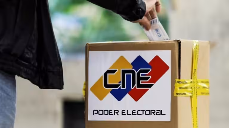Person casting a paper ballot in a box with the logo of the Venezuelan National Electoral Council (CNE). Photo: File photo.