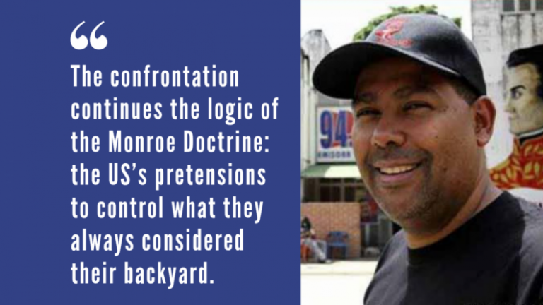 The current confrontation has two elements. The obvious one has to do with the US’s open interest in our resources, but I would dare to say that more important than that is the US’s deep antagonism to the Bolivarian doctrine, which is the one that has oriented this process for the past two decades. Bolivar wanted to construct a bloc of republics as one nation … [Tellingly] when reflecting on this in the 1820s, Bolivar said: “The United States appears destined by Providence to plague America with miseries in the name of liberty.”