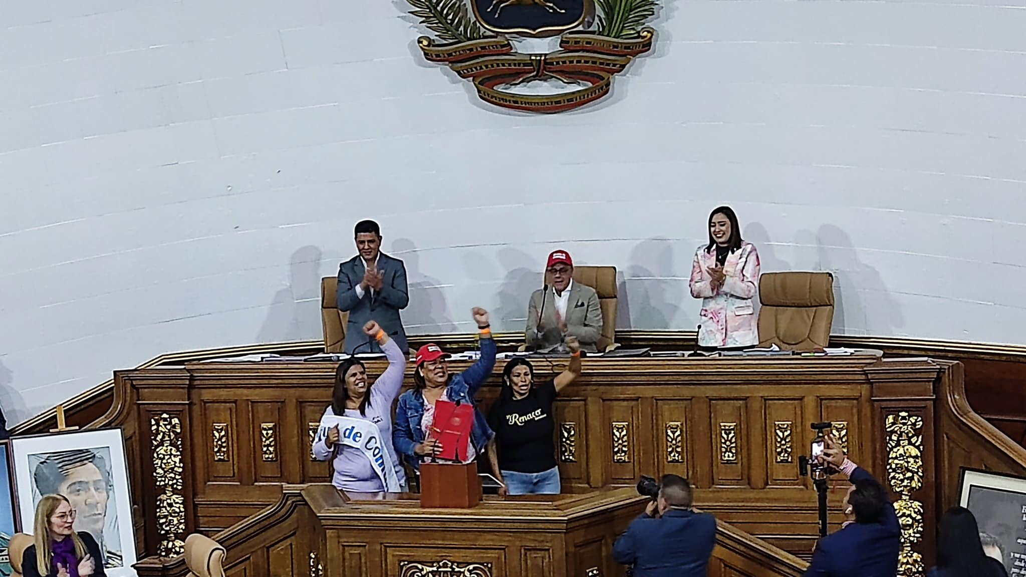 Venezuelan comuneros chanting and celebrating the approval of the Communal Councils Law Reform passed on Thursday, June 22, 2023, by the National Assembly. Photo: Twitter/@Asamblea_Ven.