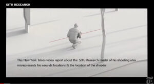 In 2018, the New York Times (NYT) published a lengthy story titled “Who Killed the Kiev Protesters? A 3-D Model Holds the Clues”. It was accompanied by a video titled “Did Police Kill these protesters? What the videos show.” The NYT story reports that Ukrainian prosecutors enlisted the help of SITU Research, who built a replica of the street where protesters were shot, then did 3D modeling of the buildings, location of protesters, police, etc.. They analyzed dozens of actual videos then produced their own video concluding “In all three cases, individual officers can be seen aiming and firing their rifles during the moments leading to the victims’ deaths.”