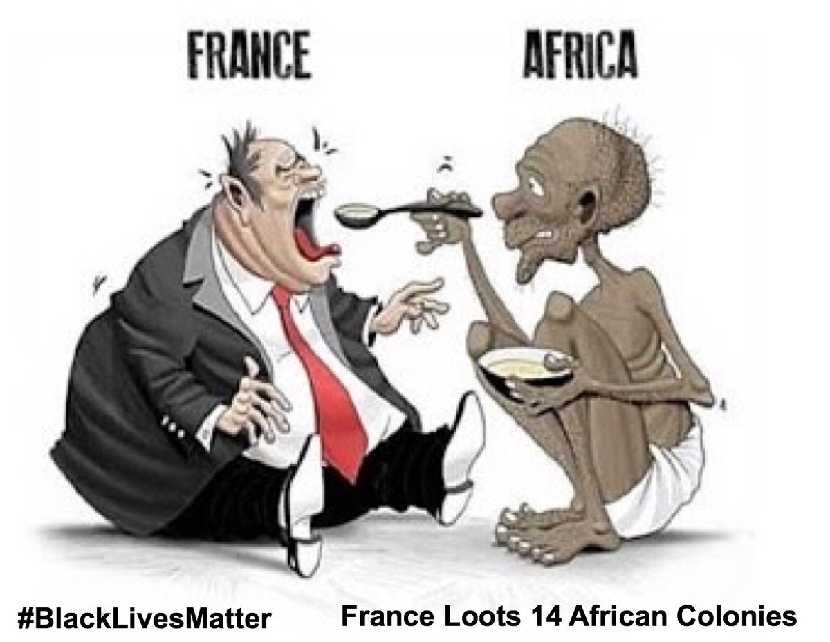 Caricature showing two men, a very skinny African feeding an obese Frenchman. File photo.