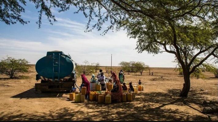 People filling up tanks with water from a truck. Photo: Vincent Tremeau.