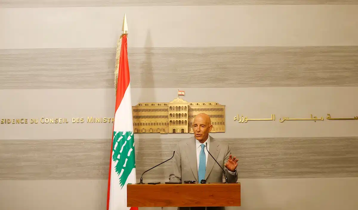 US envoy Thomas Barrack speaks after meeting with Lebanese Prime Minister Nawaf Salam, in Beirut, Lebanon July 21, 2025. Photo: Marwan Bou Haidar.