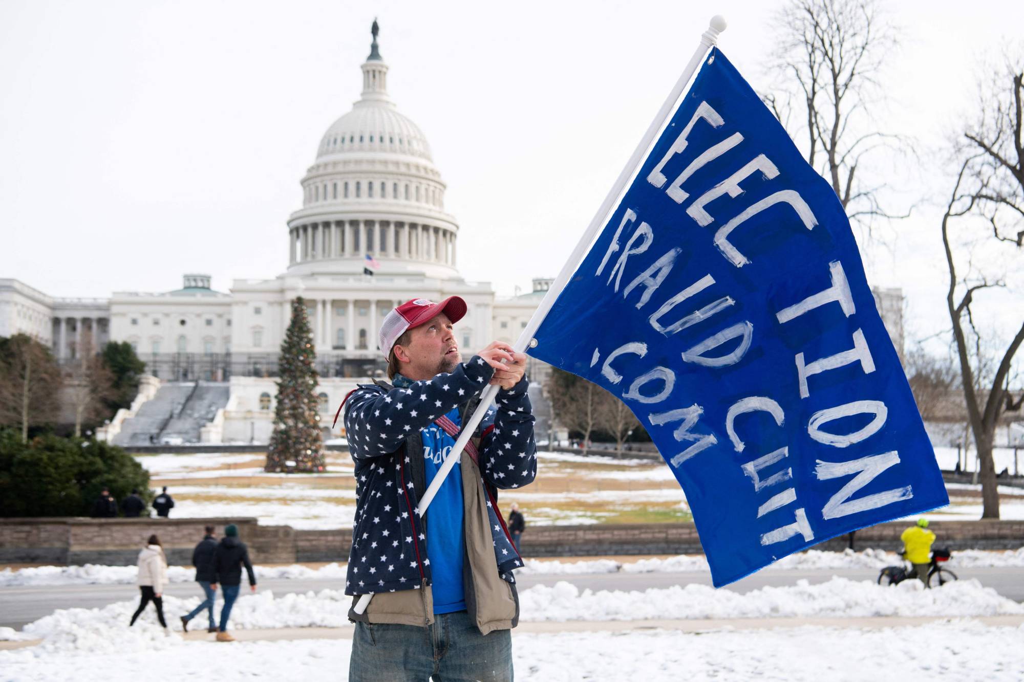 A man waves a flag in front of the US Capitol on Jan. 6, 2021. Photo: AFP.JIJI.