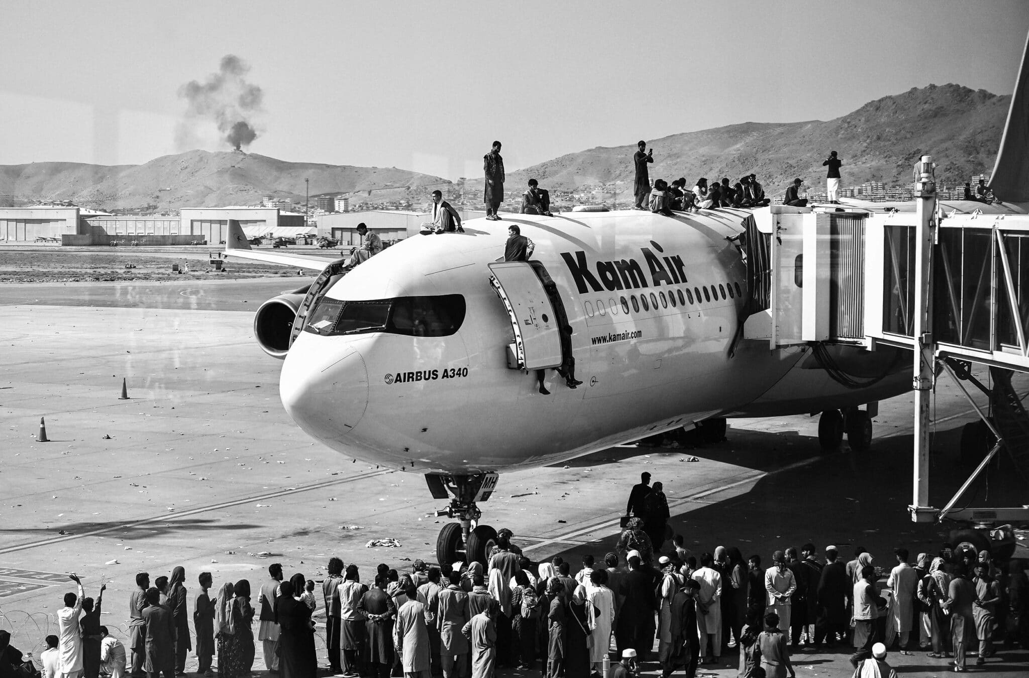 Afghans storming the Kabul Airport days before US Army's abandonment of the country. Photo: Wakil Kohsar/AFP.