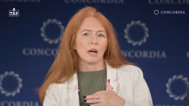 Jodie Ginsberg, CEO of the Committee to Protect Journalists (CPJ), speaking at the 2025 Concordia Annual Summit. Photo: @ConcordiaSummit/YouTube.