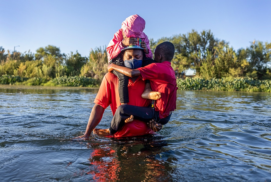 Seeking refuge: a Haitian family cross the Rio Grande into Texas, September 2021. John Moore · Getty