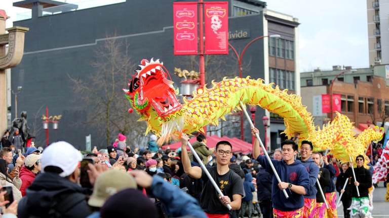 Performers take part in 48th annual Chinatown Spring Festival Parade in Chinatown of Vancouver, British Columbia, Canada on January 22, 2023. Photo by Mert Alper Dervis/Anadolu Agency via Getty Images.