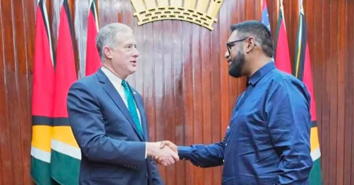 Deputy Assistant Secretary of Defense for the Western Hemisphere at the US Department of Defense Daniel Erikson meets Guyanese President Irfaan Ali in Georgetown, Guyana on January 8, 2024. Photo: Guyanese Presidency.