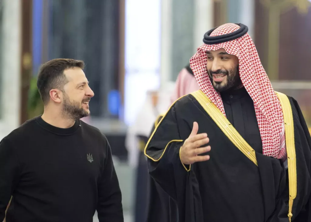 Ukrainian President Volodymyr Zelensky (left) meeting with Saudi Crown Prince Mohammed bin Salman in Riyadh, Saudi Arabia, in February 2024. Photo: Saudi Press Agency/file photo.
