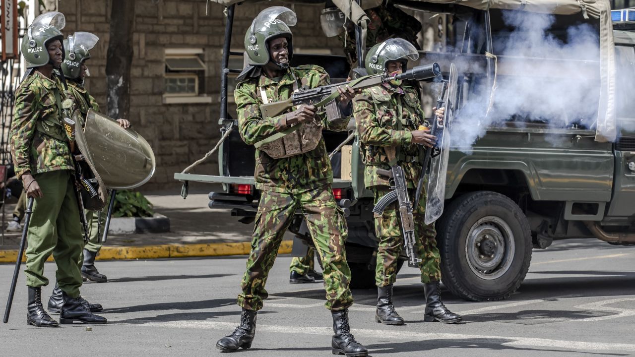Kenyan police teargas protestors. Photo: Luis Tato/AFP.