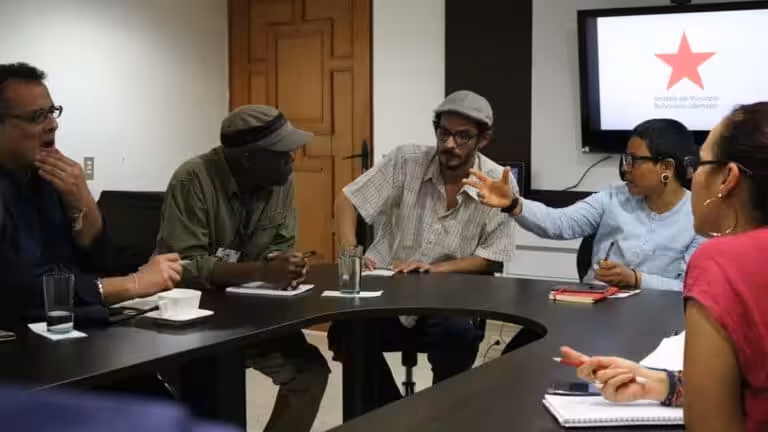 Featured image: From left to right: Vijay Prashad, Fred M’membe, Diego Sequera, and Erika Farías in Caracas, 2019. Photograph taken by Yeimi Salinas.