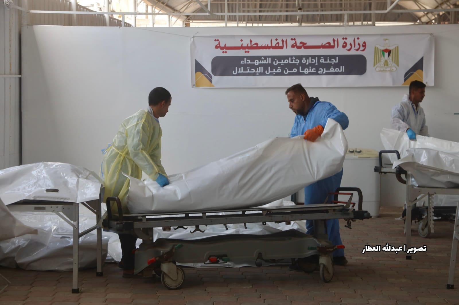 Staff at the Nasser Medical Complex in Gaza receive bodies of Palestinian prisoners released by the Zionist entity as part of the prisoner exchange deal with Hamas, November 3, 2025. Photo: Facebook/Jerusalem-alquds.